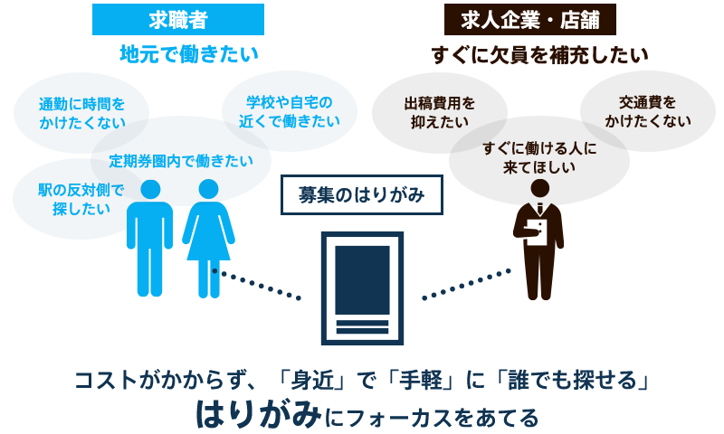 そこで見出されたのは、求職者と求人企業・店舗をつなぐ「はりがみ」でした。