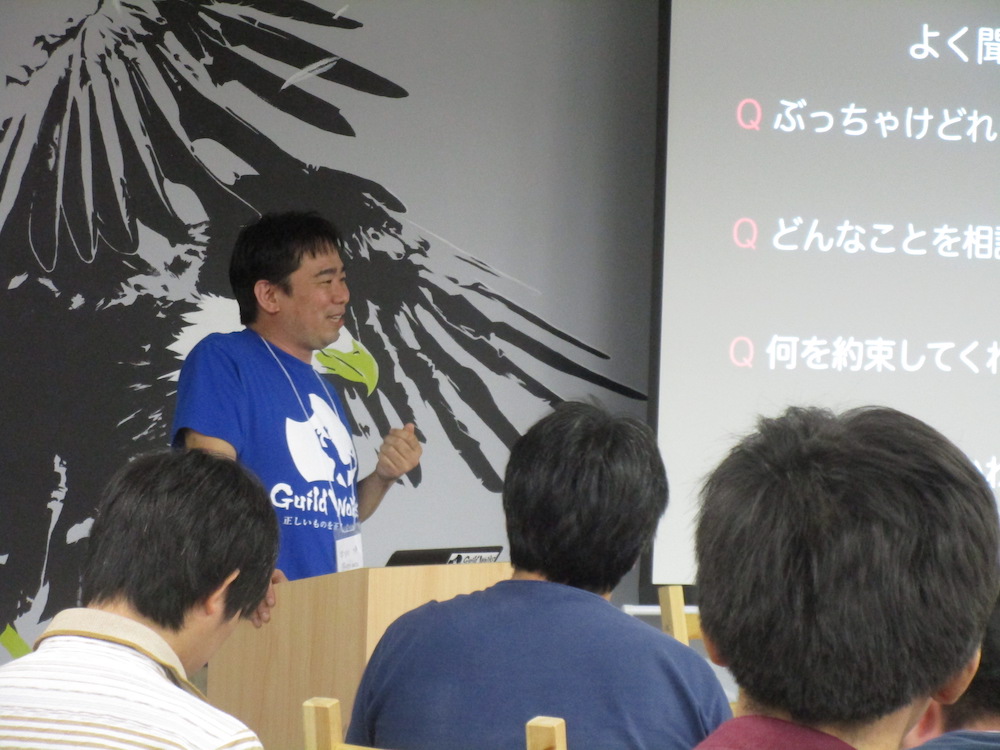 ギルドワークスとギルドメンバーが、どのようにチームを組んで仕事をしているか、座談会形式で展開。適宜質問も受け付けながら、和やかな雰囲気で進みました。