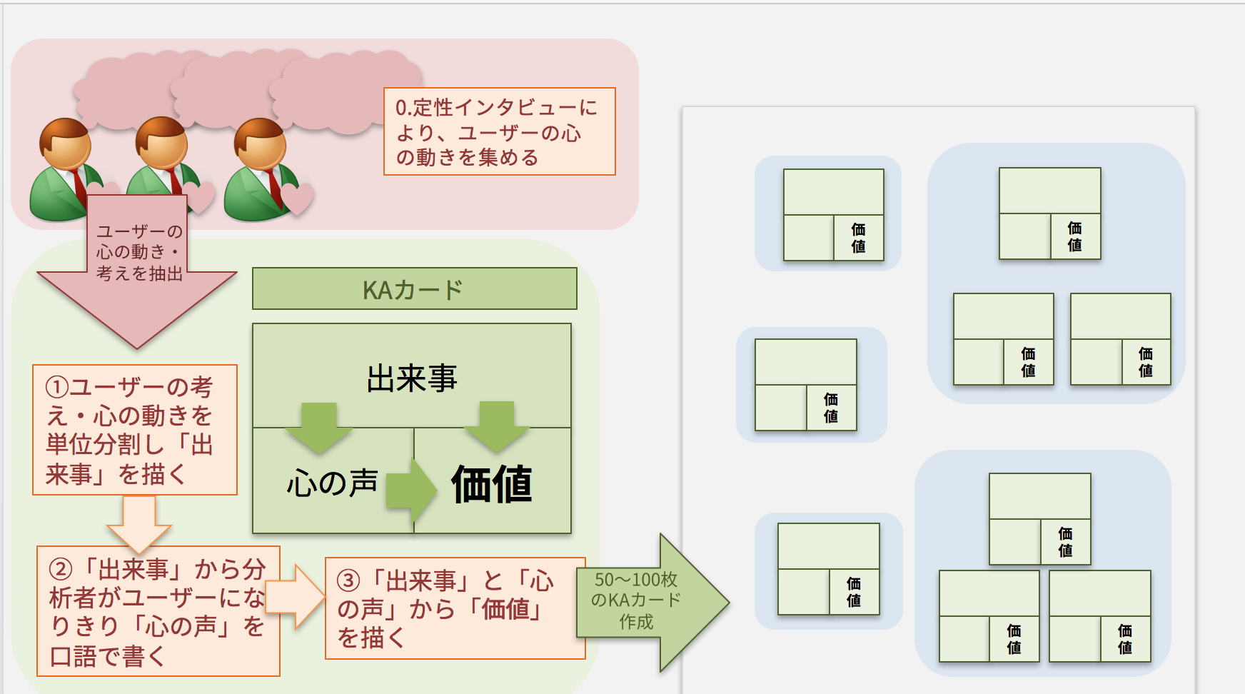 1. ユーザーが遭遇した出来事や発言から、そのユーザーになりきり、その人にとっての生活価値を抽出する(KAカードの作成)