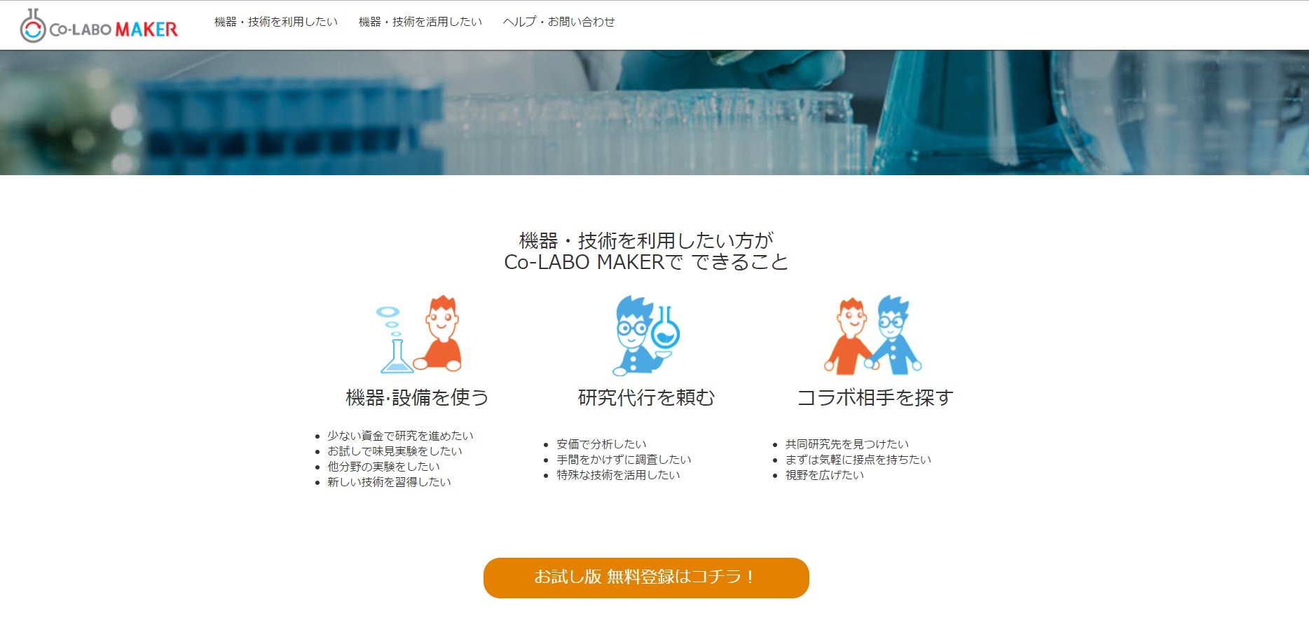 実は、実験機器ってけっこう余っているんです。何千万円何億円という機器がほとんど使われない状態で、企業や大学研究室にあるのは非常にもったいない。大学で研究していた時も、企業で研究していた時も常にそう思っていました。そして、他の人がその実験機器を使いたいと思ったとしても、なかなかその情報にたどり着けない。使われずにいる実験機器や技術を活用し、これまでリソースがなくてちゃんと実験できなかったことが、実験できるようになる仕組みを作り、その情報をシェアするというサービスを提案しました。