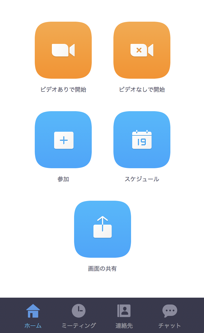 その点Zoomでは、以下の画像のようにビデオありかなしで開始をすればミーティングルームができあがるので、そのURLを共有するだけです