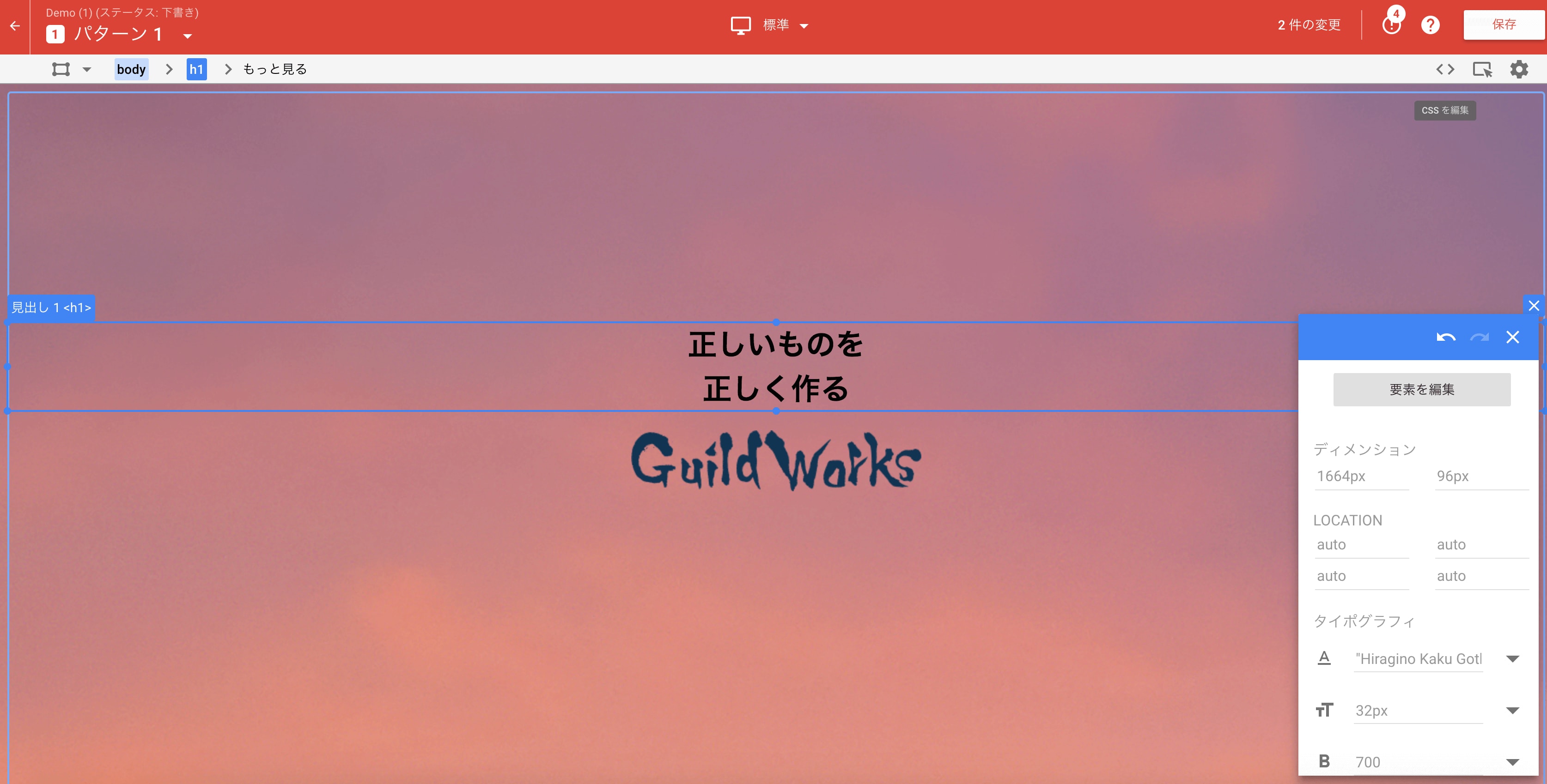 パターンを作成し、ビジュアルエディタを使用して、要素の編集を行います。