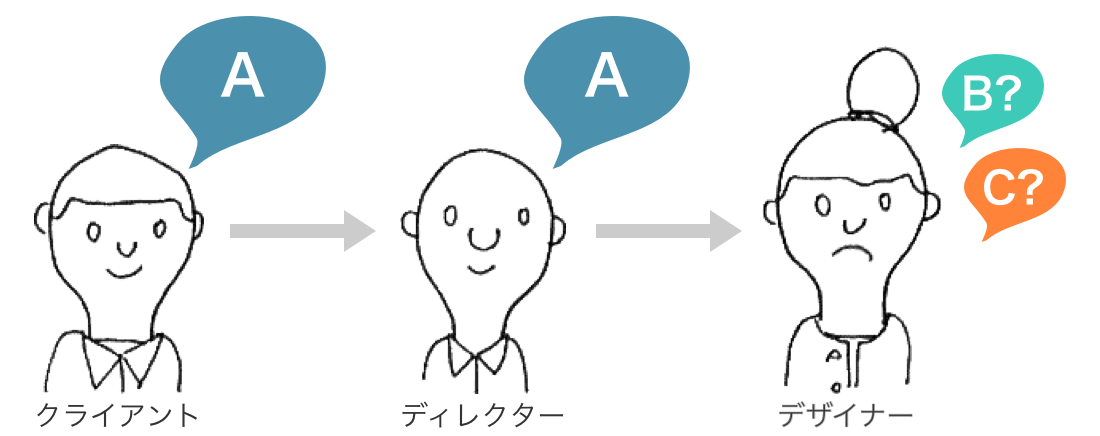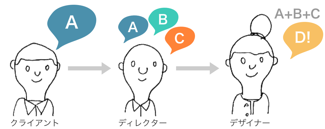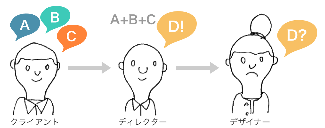 この場合、「ディレクターの主観・妄想」がクライアントのものと一致している場合には、とってもうまくいきます。いっぱつOK。でも、まったく違う場合には、かなりの手戻りです。